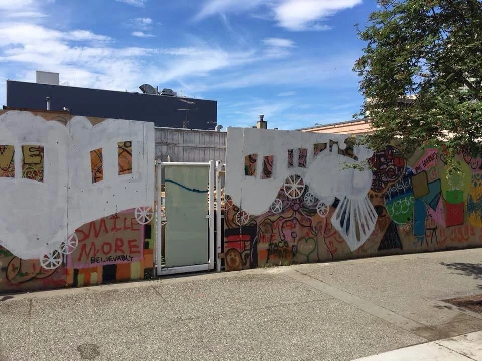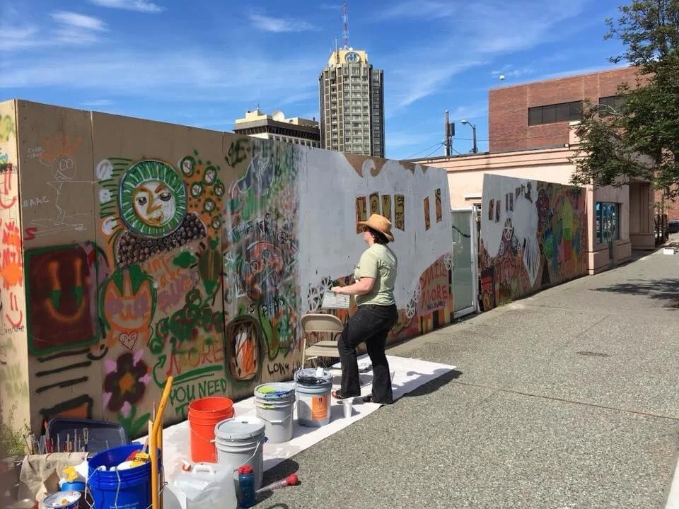 A community centered mural tying downtown Anchorage, Alaska to the nearby railroad system, one of the central unifying transportation systems in the state. Community members joined in during the process to put ‘their piece’ up, while the larger theme was unified via Vanessa Sweet and Ted Kincaid.